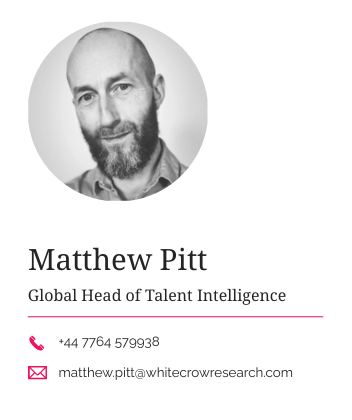 To discuss any of the issues covered in this document, or to obtain additional information on Whitecrow Research’s Talent Intelligence capabilities, please contact: