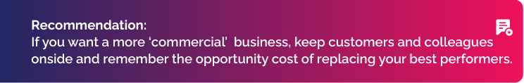 Again, the healthcare sector provides an example of how this can backfire. During a recent project, we came across a global pharma business which laid off numerous staff, asked others to re-interview for their jobs and repurposed a key product role to make it more ‘commercial’. The aim was to reduce cost and drive up sales. In the short term it worked, but it soon became clear that the new arrangement came with some unsuspected drawbacks.